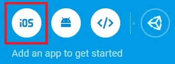 In the Add an app to Get Started section, click on the iOS Icon to add an iOS app to Firebase.